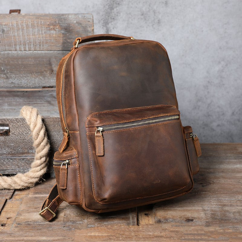 Crazy horse leather is made by applying a special kind of wax to a full grain cow leather surface that has been smoothed out. Through the application of the wax, plays a very distinctive role in the uniqueness of crazy horse leather. It will cause small changes to the material's shape and appearance. This gives it a unique retro, vintage look which ages beautifully over time.